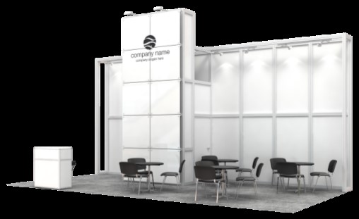 | Banner mesh with printing and company name on the open sides of the stand | ||||||